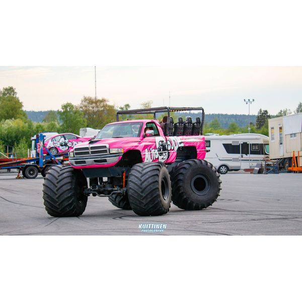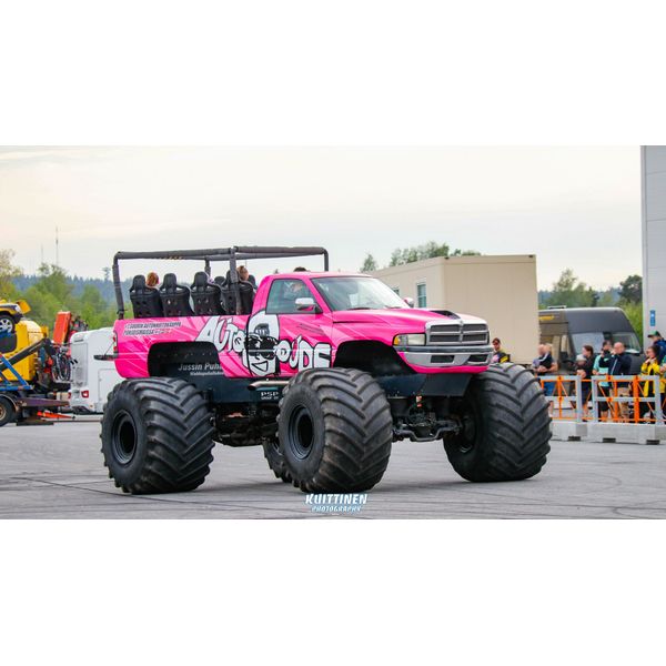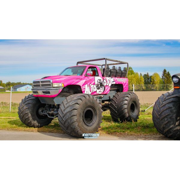NO NYT ÄKKIÄ OSTOHOUSUT JALKAAN - MYYNNISSÄ AITO AUTODUDE MONSTERI!! Tästä Old School -tyyliin rakennetusta monsterista löytyy kaikki ne ominaisuudet, mitä tarvitset. Voimaa on vähintäänkin riittävästi, maavaraa enemmän kuin tarpeeksi, ulkonäkö ja väri on viimeisen päälle jnejne.. Kaikki hienot ominaisuudet eivät edes mahdu tähän myyntitekstiin tai sitten niitä ei vain tullut tähän hätään enempää mieleen. Huomionarvoista on kuitenkin se, että tämän pinkin paholaisen kyydistä pääsee kerralla nauttimaan suurempikin seurue, sillä istumapaikkoja löytyy jokaiselle sormelle (2 hytissä ja 8 lavalla) - kyseessä siis todellinen perheauto, joka soveltuu erinomaisesti vaikkapa retkeilyyn tai vaativaan maastoajoon! Omakohtaisesta kokemuksestamme voimme sanoa, että jo pelkästään moottorin tuottamat varsin eläimelliset äänet saavat leuan vetämään napaa kohti kerta toisensa jälkeen. Tämän pitäisi olla jo riittävän hyvä syy ostaa tämä auto, mutta jos emmit vielä, jatka lukemista. Tähän et pety!