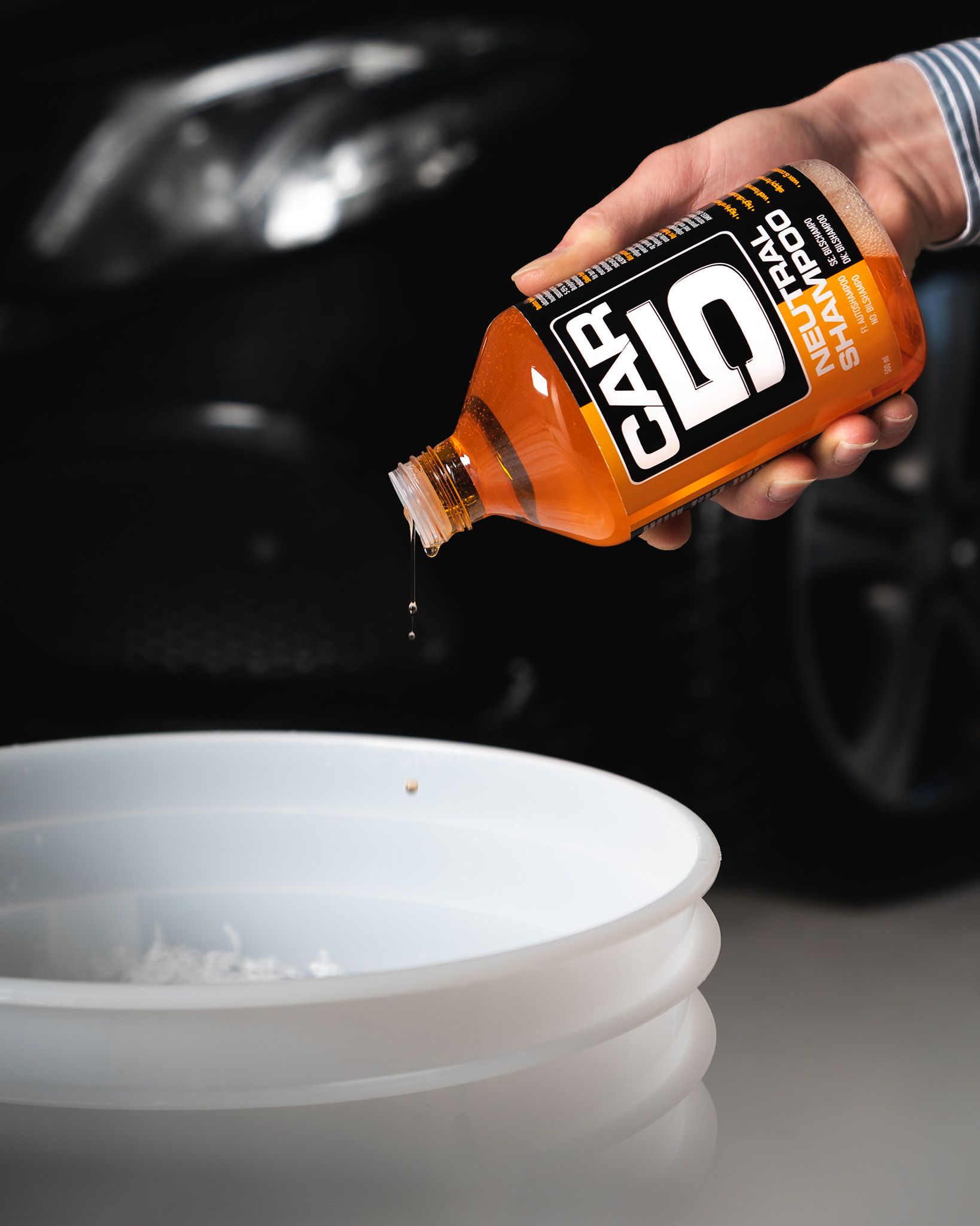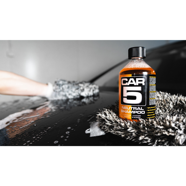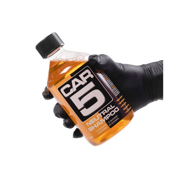 CAR5 Shampoo on tehokkaasti pesevä ja voimakkaasti vaahtoava autoshampoo, joka sopii kaikille autoaan peseville taitotasosta riippumatta. Se puhdistaa pestävät pinnat tehokkaasti, ja luo samalla erittäin liukkaan pinnan lakan ja pesuvälineen välille, mikä helpottaa pesua ja minimoi naarmuuntumisriskin. CAR5 Shampoo on turvallinen kaikille auton ulkopinnoille: se soveltuu kaikenlaisille lakkapinnoille väristä riippumatta, ja shampoo on turvallinen käyttää myös kromiosilla, kiillotetuilla alumiinilla, muovilla sekä muilla vastaavilla herkillä pinnoilla. Shampoo on vahaturvallinen, eikä se kulutua pinnalla olevaa vahaa tai pinnoitetta. CAR5 Shampoo ei myöskään sisällä ylimääräisiä vahoja tai muita suojaavia ainesosia, vaan se on kehitetty ennen kaikkea korostamaan ja elvyttämään auton alkuperäistä maalipintaa ja sitä mahdollisesti suojaavaa vaha-/pinnoitekerrosta. CAR5 Shampoo muodostuu useista puhdistavista ainesosista, jotka täydentävät toinen toistaan ja jättävät jälkeensä puhtaan ja kiiltävän pinnan. Raikas appelsiinin tuoksu!