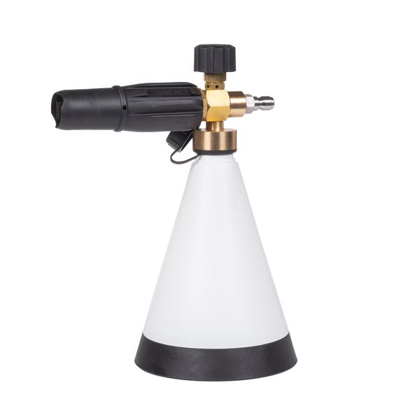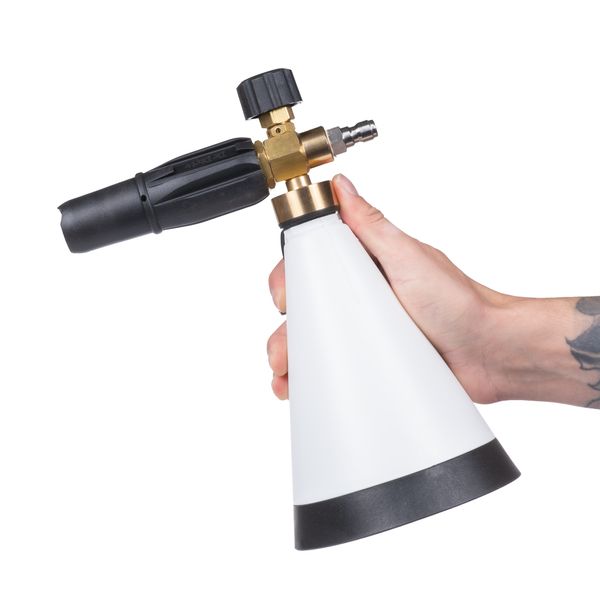 Autonpesun mullistanut Foam Lance KC Dr Dirt -pesuainevaahdotin on muuttanut monen autonpesijän käsityksen autonpesusta täysin. Foam lancen ansiosta auton käsinpesu ei tunnukaan enää inhottavalta työltä, vaan sen sijaan hauskalta ja mukavalta! Vaahdotin muodostaa vedestä ja pesuaineesta auton maalipinnalle tarttuvan ja pitkään pinnoilla pysyvän vaahdon, joka parhaimmillaan riittää jo yksinään tyydyttävään pesutulokseen - ns. ylläpitopesuun! Valmiiksi kasattu => heti käyttövalmis. Tähän settiin on nyt päivitetty uudistettu Dr Dirt G3 -pesuainevaahdotin, joka toimii SnapLock™-pikaliittimellä, joka mahdollistaa vaahdottimen nopean kiinnityksen ja irroituksen, vaikka pesurin alkuperäinen kiinnitysjärjestelmä olisi kierteellä tai muulla hitaammalla tavalla kiinnitettävä! Vaahdottimen mukana toimitetaan pesurikohtainen vastakappale pikaliittimellä, jolla mikä tahansa pesuri saadaan muutettua pikaliitintä tukevaksi malliksi. Tässä setissä on vaahdottimen lisäksi mukana markkinoiden tehokkain vahaturvallinen esipesuaine, King Carthurin Control Snow Foam, ja yhdessä vaahdottimen kanssa käytettynä pesutulos on huikea!