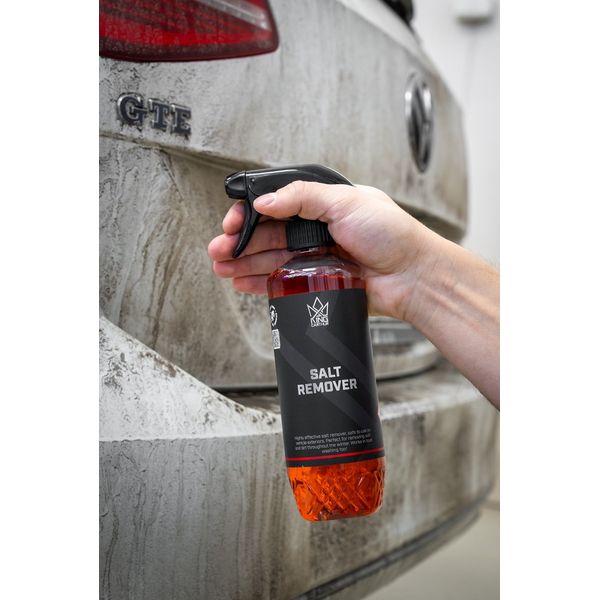 King Carthur Salt Remover on erittäin tehokas suolanpoistoaine, joka on nimensä mukaisesti tarkoitettu suolan irrotukseen osana talvista esipesua. Suola ja nykyään teille kylvettävä mäntyöljypohjainen suolan korvike yhdistettynä siihen, että talviaikaan auton pesussa saattaa olla viikkojen, pahimmillaan jopa kuukausien tauko, saavat vaikean lian tarttumaan poikkeuksellisen tiukasti autoon kiinni. Kun talvilika pääsee pinttymään, eivät normaalit esipesuaineet välttämättä pure siihen halutulla tavalla. King Carthurin Salt Remover on kehitetty juuri tätä ongelmaa varten: aine levitetään pintaan esipesun ensimmäisessä vaiheessa ennen varsinaista esipesuaineen vaahdotusta, jolloin se liuottaa pinnassa tuon kaikista hankalimman likakerroksen. Tämän jälkeen pintaan vaahdotetaan "normaali" esipesuaine, joka vuorostaan pääsee puremaan siihen normaalilikaan ja irroittamaan sen. Tällä varmistetaan, että pinta saadaan mahdollisimman puhtaaksi ennen kuin siihen kosketaan millään. Salt Remover soveltuu lähes kaikille auton ulkopinnoille, eli maalipinnan lisäksi sitä voidaan käyttää myös vanteille ja laseille. Maalaamattomat ja käsittelemättömät metalliosat tulee suojata ennen pesua.