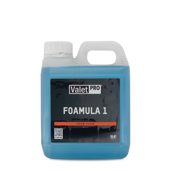 ValetPRO Foamula 1 on pH-neutraali ja tehokas, vahaturvallinen, esipesuaine ylläpitopesuihin. Pääasiassa vaahdottimen kanssa käytettävä aine tuottaa paksun, vahvan ja takertuvan vaahdon, joka irrottaa likaa tehokkaasti. Tätä ainetta voidaan huolettomasti käyttää kaikenlaisilla maali- ja lakkapinnoilla.