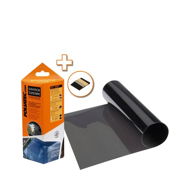 Foliatec TOPSTRIPE on helppokäyttöinen ja käytännöllinen tummennuskalvo, joka asennetaan tuulilasin ylälaitaan. Kalvo tummentaa lasin yläreunan, jolloin se ehkäisee auringon häikäisevien säteiden lankeamista silmiin. Kirkkaina päivinä yläviistosta porottava aurinko kohdistaa äärimmäistä rasitusta kuljettajan silmiin, mikä aiheuttaa etenkin pitkillä matkoilla katseen ennenaikaista väsymistä. Ikkunakalvon avulla ajokokemuksesta saadaan mukavampi ja ennen kaikkea turvallisempi, kun silmiä ei tarvitse siristellä ja ympäristön kirkkauserot tasaantuvat. TOPSTRIPE-kalvo on huomaamaton ja sulava osa ajoneuvon tuulilasia, mutta tarjoaa silti merkittävää helpotusta kuljettajalle. Laadukasta tummennuskalvoa voidaan muotoilla yksilöllisesti erikokoisiin ajoneuvoihin. TOPSTRIPE:n avulla voit toteuttaa ammattimaisen tummennuksen oman autosi laseihin vaikka omassa autotallissa!