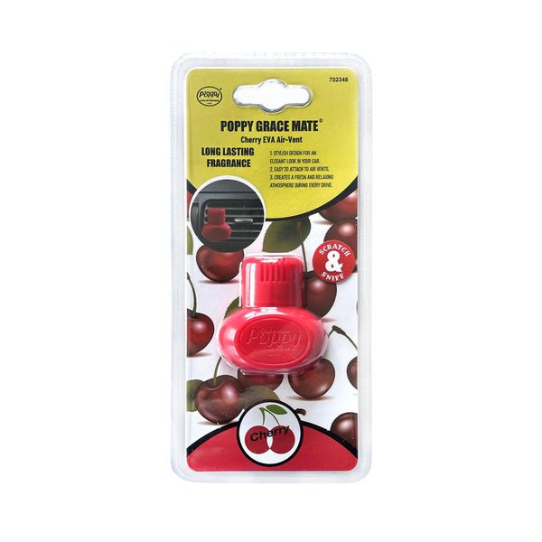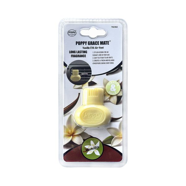 Grace Mate Poppy Air-Vent on auton ilmanvaihtoventtiiliin kiinnitettävä ilmanraikastin, joka saa koko ajoneuvon tuoksumaan taivaalliselta! Tuuletusreikiin kiinnitetyn ilmanraikastimen voimakkuutta on helppo säädellä ilmastoinnin ilmavirtausta säätämällä. Helppo kiinnitys mukana toimitettavalla kestävällä kiinnikkeellä. Saatavilla joko vanilijan tai kirsikan tuoksuisena.