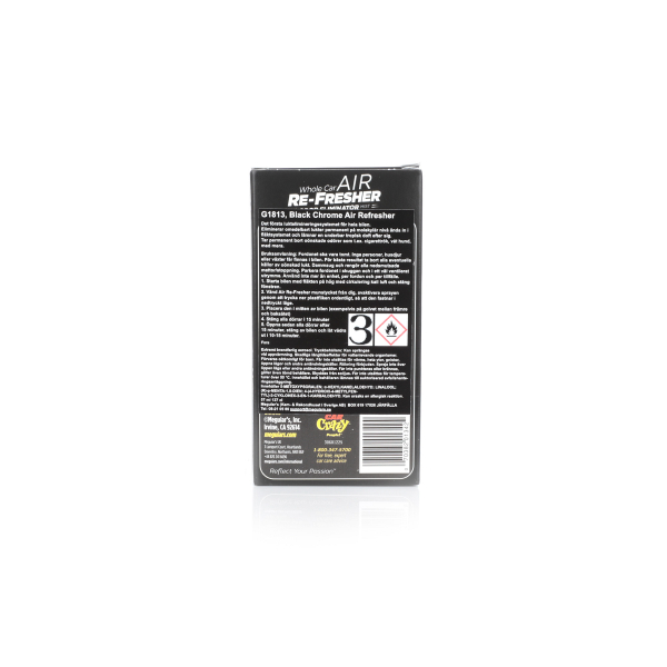 Auton sisustan kertaheitolla raikastava tuote. Kertakäyttöinen. Black Chrome tuoksu.