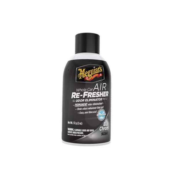 Meguiars Air Re-Fresher on koko autoon tarkoitettu hajunpoistaja, mikä sumutettavana tunkeutuu auton hankaliimpiin paikkoihin. Air Re-Fresher kulkee ilmastointijärjestelmän läpi jättäen autoon raikkaan tuoksun. Poistaa mm tupakan, eläinten ja muut yleiset hajut tehokkaasti. Kertakäyttöinen.