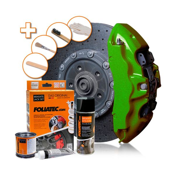 Foliatecin Performance Green Metallic on erittäin helppokäyttöinen jarrusatuloiden maalaussetti, jonka avulla tuunaat autosi jarrusatulat ja samalla koko lookin tähän päivään! Tämä huippuluokan paketti kattaa kaiken aina jarrujen puhdistusaineesta itse maaliin sekä maalausvälineisiin, joten sinun ei tarvitse hankkia mitään muuta setin lisäksi. Laadukas Foliatec-maalaussetti mahdollistaa auton tuunaamisen itse vaikka omassa autotallissa, joten autoa ei tarvitse viedä kustomoitavaksi ammattilaiselle. Settiin kuuluva Performance Green Metallic -maali antaa jarrusatuloille upean metallinhohtoisen vihreän värin, joka luo säväyttävän yleisilmeen lisäksi autolle myös sporttisen lookin. Tällä metallinvihreällä värillä autosi jarrusatuloista tulee todelliset katseenvangitsijat!