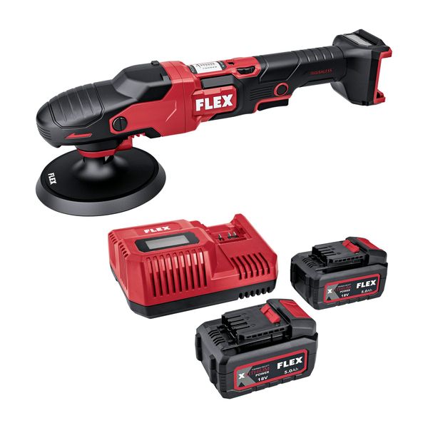 Koneen mukana toimitetaan kaksi 5 Ah Flex 18V li-ion akkua, jotka antavat täydellä teholla käytettäessä virtaa n. 20-25 minuutin ajan. Mukana toimitetut akut mahdollistaa yhden akun lataamisen, kun toinen on käytössä, jolloin työskentelyä ei ikinä tarvitse keskeyttää pitkäksi aikaa. Akkujen optimaalinen sijoitus erinomaisella painojakaumalla antaa käyttäjälle täydellisen liikkumisvapauden ja varmuuden koneen tarkkaan ohjaamiseen kiillotuksen aikana. Akuissa on sisäänrakennettu suojapiiri, joka suojaa mm. ylilataukselta ja purkautumiselta. Lisäksi akuista löytyy latausindikaattori.