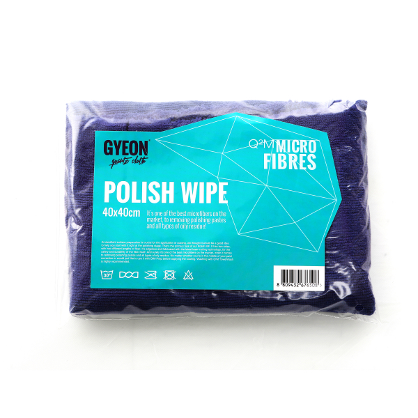Gyeon Q²M PolishWipe on toiselta puolelta pehmeä ja tuuhea ja toiselta puolelta lyhytnukkainen kiillotusliina. Lyhytnukkainen puoli toimii loistavasti esim. kiillotustahnojen poispyyhinnässä, ja pitkänukkainen taas vahojen ja quick detailereiden loppukiillotuksessa. Sen hellävarainen rakenne on omiaan myös poikkeuksellisen pehmeille maalipinnoille. Liinan reunat on laserleikattu, joten niissä ei ole minkäänlaista reunusta, joka voisi naarmuttaa pintaa.