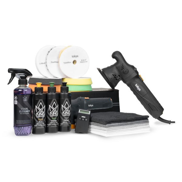 Tokya OP5 Lite DELUXE on sekä aloittelijoille että jo hieman kokemusta omaaville autoharrastajille suunniteltu kiillotussetti, joka sisältää kaiken, mitä tarvitaan aina auton koneellisesta vahauksesta syvien naarmujen poistoon ja maalipinnan ehostukseen. Settiin kuuluu Tokyan aloittelijaystävällinen OP5 Lite -epäkeskokiillotuskone, jonka laaja kierrosalue, 5" laikkakoko ja 9" epäkeskoliike tekevät siitä todella monipuolisen: sama kone toimii sekä suurien että enemmän tarkkuutta vaativien kohtien tehokkaaseen työstöön. Vapaa epäkeskoliike takaa turvallisen ja aloittelijaystävällisen kiillotuskokemuksen, eikä sillä voi saada esim. suoravetoisen koneen tavoin vaurioita aikaiseksi, vaikka koneen käsittely olisikin vielä epävarmaa. Perinteistä 6 mm epäkeskoliikettä suurempi 9 mm liike kuitenkin varmistaa, että suurempienkin alueiden kiillotus sujuu ripeästi.