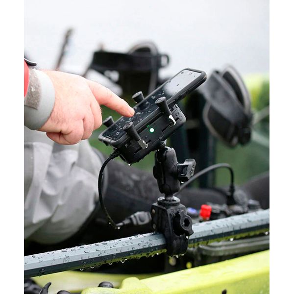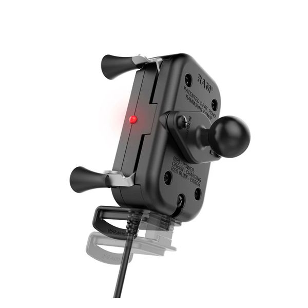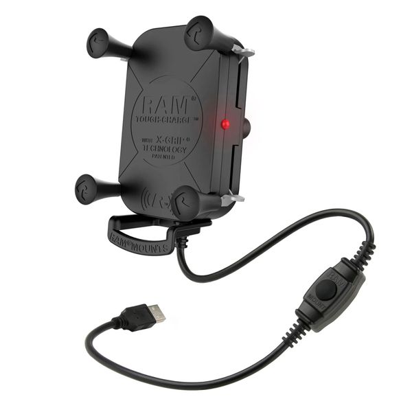 RAM Mounts Tough-Charge™ X-Grip on puhelimille suunniteltu vedenpitävä yhdistetty langaton laturi sekä kiinnike, jonka avulla älypuhelin saadaan sekä ladattua että kiinnitettyä tukevasti ja ennen kaikkea helposti esimerkiksi ajoneuvon ohjaamoon, rekan tai traktorin hyttiin, veneeseen, pyörän ohjaustankoon tai vaikkapa työpöydällä olevaan jalustaan videopuheluita helpottamaan! Kiinnike on valmistettu korkealaatuisesta ja kestävästä materiaalista, ja sen älykäs nelipistekiinnitys tarraa jämäkästi kiinni laitteeseen pitäen sen vakaana myös epätasaisessa maastossa liikuttaessa. Langattomana latausasemana toimiva kiinnike tukee pikalatausta ja se voidaan kytkeä mihin tahansa USB-porttiin mukana toimitettavalla 120 cm pitkällä USB-kaapelilla. Kiinnikkeessä on RAM Mountsin B-koon (1") pallo, joka takaa täydellisen yhteensopivuuden muiden RAM-tuotteiden kanssa.