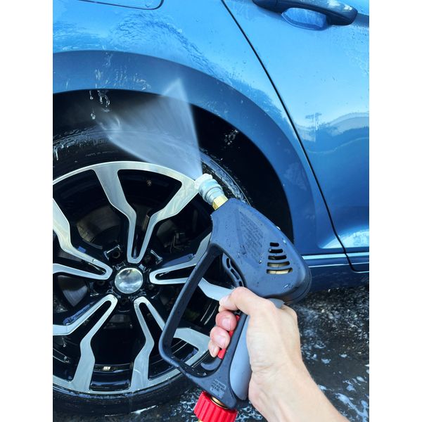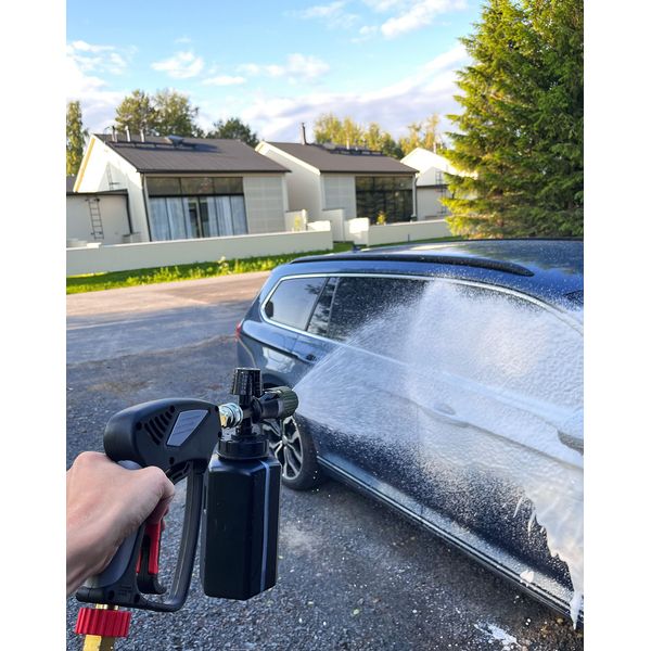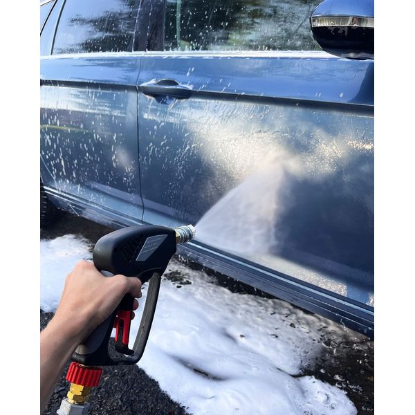 Mukana toimitettava painpesurin kahva (Dr Dirt Pressure Gun G3) on huippukätevä lyhyt pesukahva, joka on yhteensopiva SnapLock™-pikaliittimellä varustettujen lisävarusteiden kanssa. Kahvan pikaliitinominaisuuden ansiosta painepesurikin saadaan muutettua pikaliittimellä toimivaksi, jolloin erilaisten tarvikkeiden, kuten vaahdottimen ja suihkuputkien, vaihtaminen pesun aikana sujuu helposti ja vaivattomasti. Kahva kiinnittyy letkuun joko 3/8" pikaliittimellä tai M22-kierreliittimellä, mikä varmistaa sen sopivuuden suureen osaan markkinoilla olevista pesureista. Lisäksi kahva on varustettu kiinteällä pyörivällä liittimellä, mikä estää letkun kiertymisen käytön aikana, joten itse peseminen sujuu kuin tanssi. Lyhyt kahva on ihanteellinen etenkin silloin, kun autoa pestään ahtaassa tilassa tai sen ympärillä ei muuten ole paljon tilaa, jolloin pitkän kahvan kanssa operoiminen on kankeaa. Lisäksi lyhyt kahva on helppo hallita, ja se on miellyttävän kevyt, mikä tekee siitä entistäkin näppärämmän työkaverin!