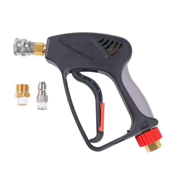 Mukana toimitettava painpesurin kahva (Dr Dirt Pressure Gun G3) on huippukätevä lyhyt pesukahva, joka on yhteensopiva SnapLock™-pikaliittimellä varustettujen lisävarusteiden kanssa. Kahvan pikaliitinominaisuuden ansiosta painepesurikin saadaan muutettua pikaliittimellä toimivaksi, jolloin erilaisten tarvikkeiden, kuten vaahdottimen ja suihkuputkien, vaihtaminen pesun aikana sujuu helposti ja vaivattomasti. Kahva kiinnittyy letkuun joko 3/8" pikaliittimellä tai M22-kierreliittimellä, mikä varmistaa sen sopivuuden suureen osaan markkinoilla olevista pesureista. Lisäksi kahva on varustettu kiinteällä pyörivällä liittimellä, mikä estää letkun kiertymisen käytön aikana, joten itse peseminen sujuu kuin tanssi. Lyhyt kahva on ihanteellinen etenkin silloin, kun autoa pestään ahtaassa tilassa tai sen ympärillä ei muuten ole paljon tilaa, jolloin pitkän kahvan kanssa operoiminen on kankeaa. Lisäksi lyhyt kahva on helppo hallita, ja se on miellyttävän kevyt, mikä tekee siitä entistäkin näppärämmän työkaverin!