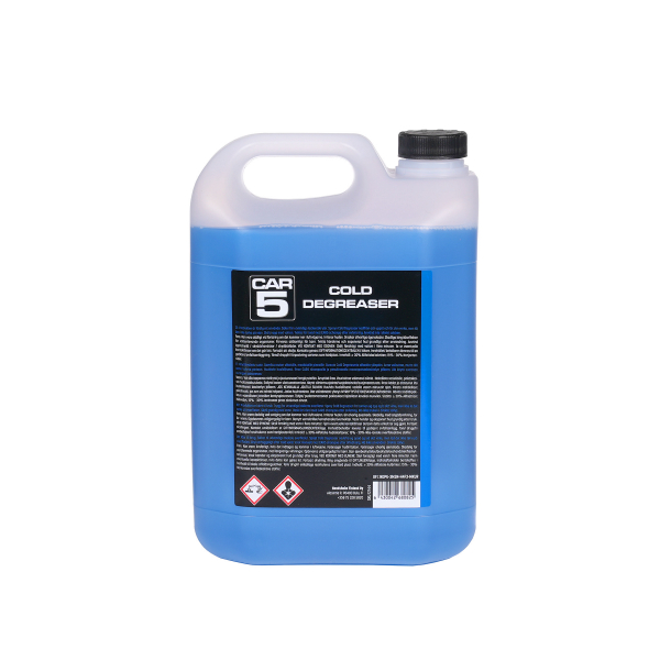 CAR5 Cold Degreaser on kylmärasvanpoistoaine, joka toimii loistavasti esipesuaineena tai esipesun yhteydessä erityisesti piki- ja tervatahroihin. Ainetta voidaan kuitenkin käyttää kaikenlaisen vaikean ja helpommankin lian poistoon sekä auton maalipinnoilta että esimerkiksi moottoritilasta. Emulgoiva vaikutus sitoo kemiallisia aineosia toisiinsa tehden aineesta äärimmäisen tehokkaan mm. pikitahrojen, bitumin, asfaltin, suolan, tervan sekä kaikkien liima-, öljy- ja rasvapohjaisten likapartikkeleiden poistoon. Emulgoivan koostumuksensa ansiosta se parantaa myös vedellä huuhtelun tehoa huomattavasti.