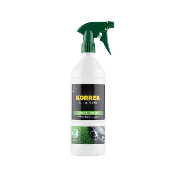 Korrek EKO Tehopesu on ympäristöystävällinen, suoraan käyttövalmis kasviöljypohjainen liuotinpesuaine. EKO Tehopesu irrottaa vaikeaan pinttyneen lian, kuten jarrupölyn ja pien. Aine sopii käytettäväksi auton perusteellisessa pesussa ennen vahausta.