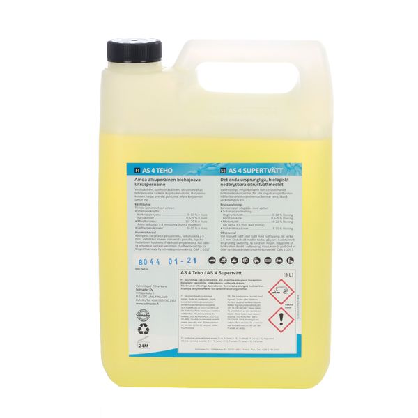 AS 4 on sitruunanraikas biohajoava tehopesuaine autoille, busseille ja kaikenlaisille työkoneille. Pitää harjapesukoneiden harjat puhtaana ja puhdistaa myös korjaamoiden lattiat. Tuote soveltuu myös autojen sisäpuhdistukseen antaen raikkaan sitruunan tuoksun.