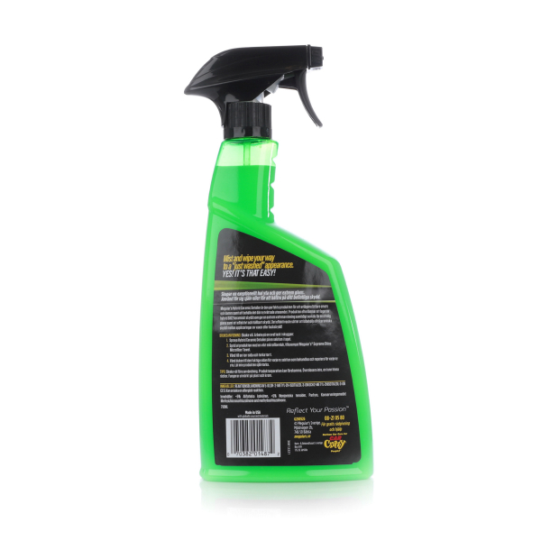 Meguiar ́s Hybrid Ceramic Detailer poistaa likaa, lisää kiiltoa sekä antaa lisäsuojaa. Täsmätuote pesujen välille tai kuivausavuksi. Huippuluokan Si02-hybriditekniikalla ajoneuvon maalipintaan saadaan hybridikeraamisen suoja samalla, kun pinta pyyhitään tai kuivataan. Yhtä helppo käyttää kuin perinteistä detaileria! Tuote jättää jälkeensä kiiltävän, vastapestyn näköisen pinnan ja todella kovan beading-efektin. Voidaan käyttää sekä kuivalle, että märälle pinnalle. Toimii äärimmäisen hyvin pölyn pyyhintään. Hoitaa sekä pinnoitettuja että vahattuja pintoja.