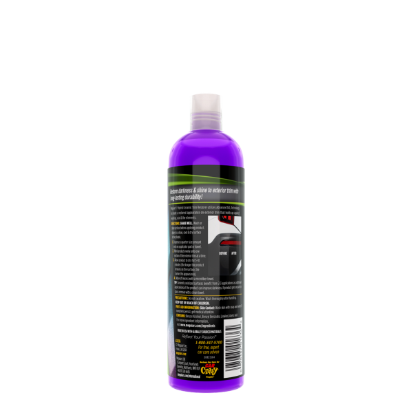 Meguiars Hybrid Ceramic Trim Restorer on keraamisia ainesosia sisältävä muovinhoitoaine kaikille ajoneuvon ulkoisille muovipinnoille. Tämä aine uudistaa, elvyttää ja palauttaa jo haalistuneiden muovipintojen luonnollisen tumman, uudenveroisen sävyn. Toki sitä voidaan käyttää myös jo valmiiksi hyvässä kunnossa oleville muoviosille antamaan tehokasta suojaa esimerkiksi auringon UV-säteitä sekä likaantumista vastaan. Hybrid Ceramic Trim Restorer hyödyntää Sio2-tekniikkaa, jonka ansiosta aine antaa erittäin pitkäkestoisen ja kestävän suojan niin luonnon aiheuttamia rasitteita kuin kemikaalejakin vastaan. Näin ajoneuvon muovit pysyvät jatkuvasti tyylikkäinä ilman ajan patinaa! Hybrid Ceramic Trim Restor antaa uuden elämän kaikille maalaamattomille muovi-, vinyyli- ja kumiosille, kuten puskureille, listoille, ovenkahvoille sekä esimerkiksi sivupeilien koteloille. Tämä helppokäyttöinen hoitoaine palauttaa ulkoiset muoviosat autosi arvoiseen loistoon!
