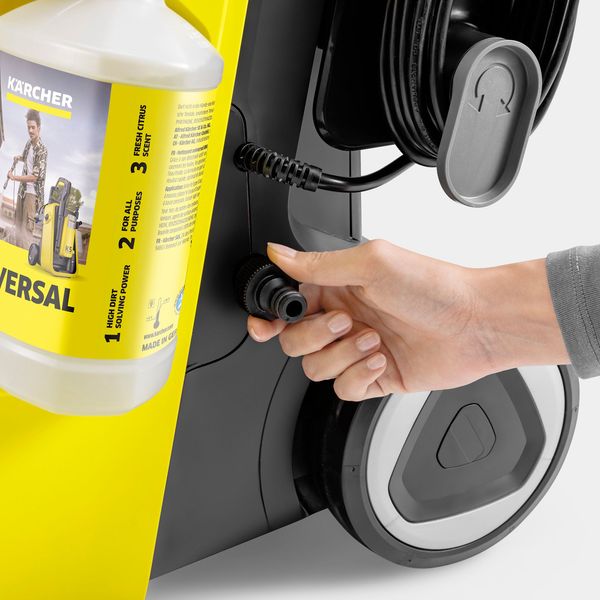 K7 Comfort Premium Connect on varustettu älykkäällä Easy!Motion™-konseptilla, joka pitää johdot ja letkut siistissä järjestyksessä, jolloin suurempienkin kohteiden peseminen on helppoa. 2Way!Wash™-pesuainejärjestelmä mahdollistaa helpon vaihdon suihkuputken ja vaahdotussuuttimen välillä tehden pesuaineen levityksestä helppoa, ja joustava PremiumFlex-paineletku varmistaa erinomaisen liikkumisvapauden. 2-in-1 pesuainejärjestelmän ansiosta pesuaineen annostelu onnistuu joko suoraan pesurin kautta tai erillisellä vaahtosuuttimella. Itseimevä pumppu mahdollistaa vedensyötön myös vaikkapa sadevesiastiasta.
