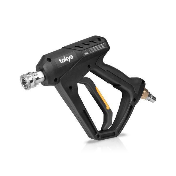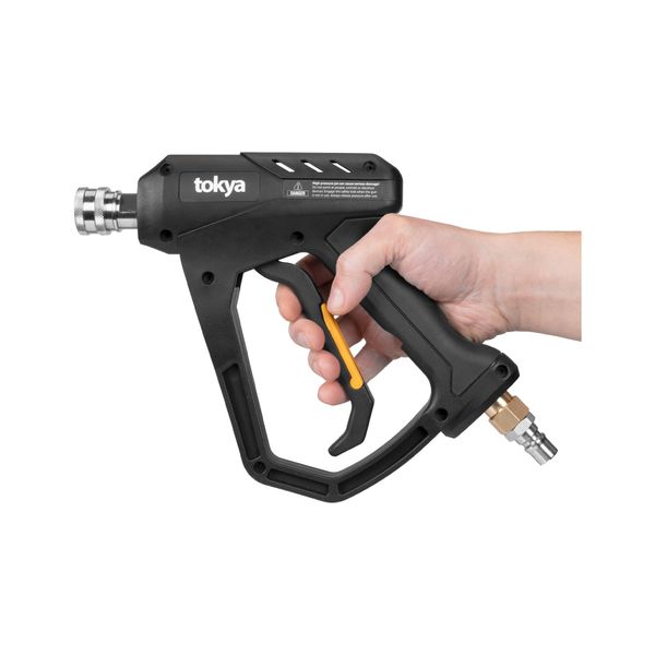 Tokya Short Pressure Pistol on laadukas, kevyt ja ergonominen painepesurin kahva, joka on varustettu kätevällä SnapLock-pikaliittimillä. Kahva on suoraan yhteensopiva Dr Dirtin G3-sarjan lisävarusteiden sekä Tokyan Azura-sarjan painepesureiden kanssa. Plug&Play-tyyppiset pikaliitokset sekä pesuriin että tarvikkeisiin takaavat sujuvan pesukokemuksen ja mahdollistavat esim. suihkuputken vaihtamisen vaahdottimeen vain hetkessä. Mielekkään pesukokemuksen takaamiseksi kahva on myös varustettu kiinteällä pyörivällä liittimellä, joka estää letkun kiertymisen käytön aikana. Lisäksi kahvasta löytyy kätevä varmistin, joka mahdollistaa liipasimen lukittamisen nk. "vahinkolaukauksien" estämiseksi.