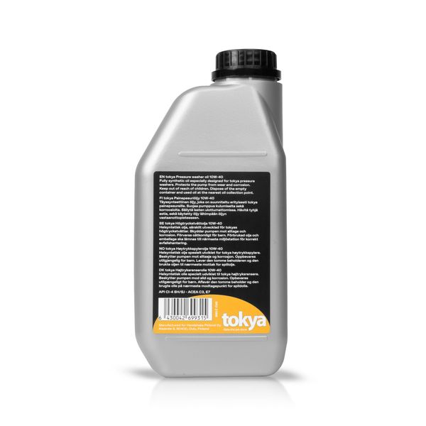 Tokyan erityisesti painepesureille suunniteltu täyssyynteettinen SAE 10W-40 -öljy, joka suojaa pesurin pumppua kulumiselta ja korroosiolta pidentäen käyttöikää merkittävästi. Soveltuu käytettäväksi mm. Tokyan Azura 3- ja Azura 5 -painepesureille.
