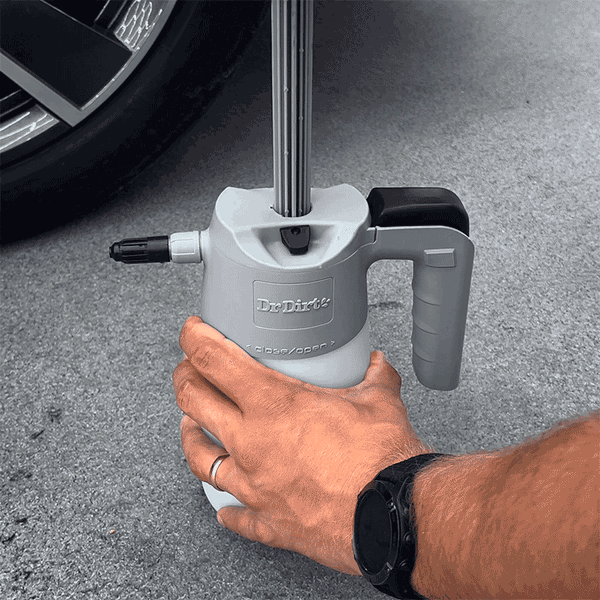 Dr Dirt Spray Gun on erittäin helppo käyttää: kierrä säiliö auki, lisää pesuaine, pumppaa kannun päällä olevalla kahvalla painetta säiliöön ja purista kahvaa pesuaineen levittämiseksi - todella helppoa! Laadukkaiden tiivisteiden ja säädettävän sumuttimen lisäksi Spray Gun on myös varustettu muilla käyttöä mukavoittavilla sekä pitkän elinkaaren takaavilla ominaisuuksilla, kuten ergonomisella kahvalla sekä ylipaineventtiilillä, joka estää liiallisen paineen pumppaamisen säiliöön ja mahdollistaa myös paineen poistamisen säiliöstä esim. säilytyksen tai kuljetuksen ajaksi. Lisäksi sen 1.5 litran (pesuainetta voi lisätä max. 1L) pesuainesäiliö on autonhoitoon optimoitu: pesuainetta ei tarvitse pysähtyä lisäämään kesken suuremmankaan ajoneuvon pesun, mutta säiliö ei kuitenkaan ole liian painava yhdellä kädellä operoitavaksi.