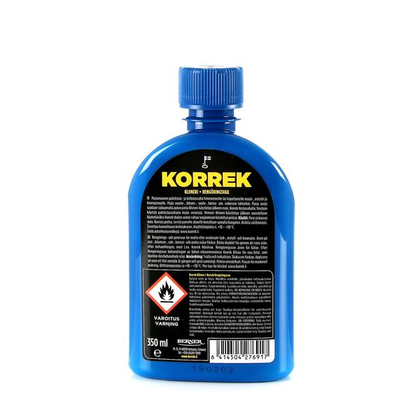 Korrek Kliineri sisältää hiovia ainesosia, se syväpuhdistaa ja silottaa pintanaarmuja. Ei sisällä silikonia, joten voidaan käyttää puhdistusvahana myös veneissä. Paras suoja saadaan vahaamalla pinta Kliineri-käsittelyn jälkeen jollakin toisella pintavahalla. Soveltuu koneelliseen kiillotukseen.