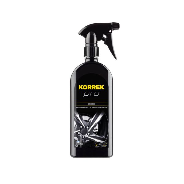 Korrek Pro Irox sopii kaikille teräs-, alumiini- ja kevytmetallivanteille sekä pölykapseleille. Iroxin hiukan geelimäinen rakenne auttaa sitä pysymään puhdistettavilla pinnoilla. Raudan kanssa reagoidessaan Irox muuttuu punertavaksi.