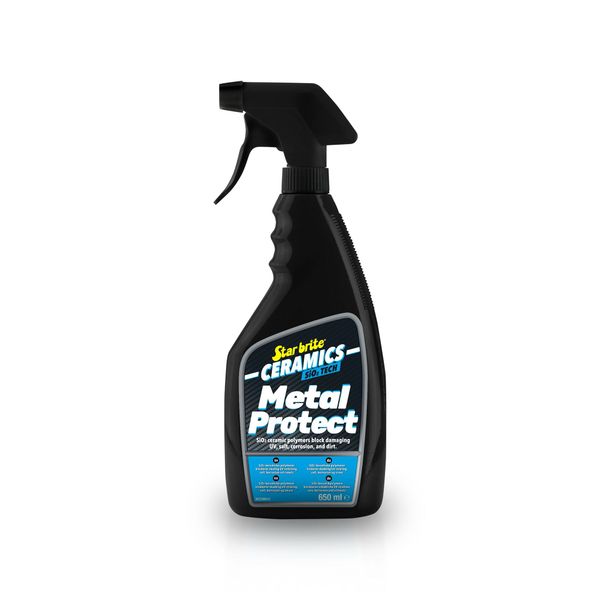 Star Brite Ceramics Metal Protect on tehokas ja kestävä sumutettava pikavaha metallipinnille. Aine on suunniteltu suojaamaan kaikentyyppisiä metallipintoja ja pidentämään niiden käyttöikää. Metal Protect luo käsiteltävään pintaan näkymättömän ja kestävän suojan, joka ehkäisee pinnan kulumista, korroosiota, suolan vaikutusta ja värjäytymistä. Täydellinen mm. veneille, auton vanteille, perävaunuille, metallikaiteille ja -aidoille, ulkokalusteille sekä kaikille kromi- ja aluimiinipinnoille ja ruostumattomasta teräksestä valmistetuille osille. Tämän aineen avulla pinnat hylkivät tehokkaasti likaa ja vettä, mikä tekee puhtaanapidosta helppoa. Lisäks aineen UV-suoja estää aurinkoa haalistamasta pintoja.