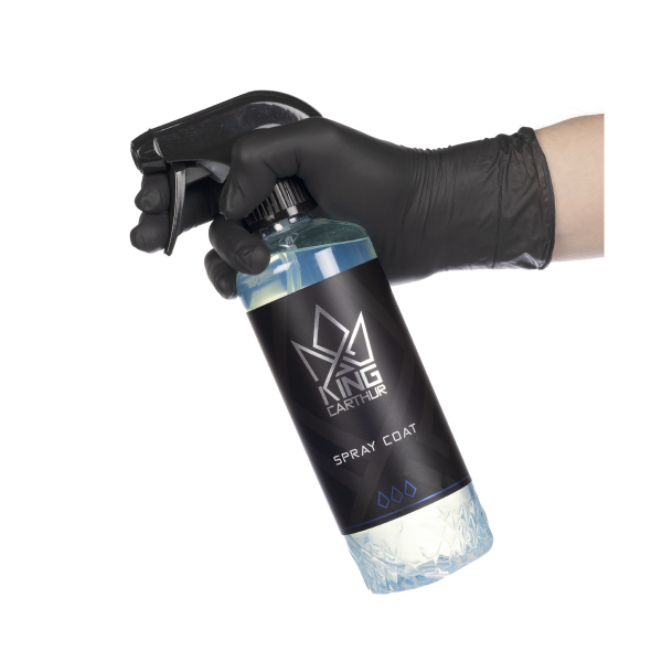 King Carthur Spray Coat on äärimmäisen helppo- ja nopeakäyttöinen, keraamista pinnoitetta sisältävä "sumuta ja huuhtele" -tyyppinen suoja-aine, joka soveltuu kaikille ajoneuvon ulkoisille pinnoille! Aine ei vaadi minkäänlaista levittämistä tai pyyhkimistä, vaan sitä käytetään suoraan märälle, pestylle pinnalle ja huuhdellaan pois. Se sitoutuu pintaan välittömästi heti huuhtelun jälkeen muodostaen todella hydrofobisen suojakalvon, joka hylkii tehokkaasti vettä ja likaa. Lisäksi Spray Coat parantaa maalipinnan kiiltoa, ja loistavan hylkivyytensä ansiosta puhtanaanapito helpottuu huomattavasti! Spray Coat toimii maalipinnan lisäksi kaikilla muillakin ulkopinnoilla, kuten esim. vanteilla, lasilla, muovilla, kumilla ja jopa teipatuilla pinnoilla. Valmistaja lupaa Spray Coatin kestoksi jopa kolmea kuukautta!