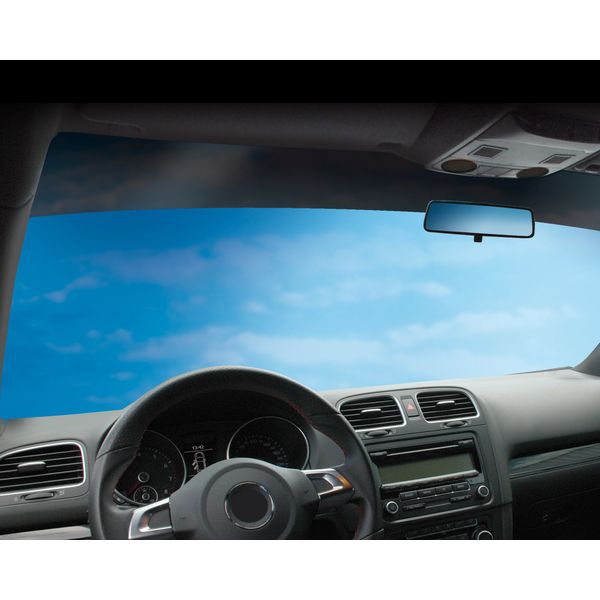 Asteittain tummeneva, tuulilasin yläreunaan asennettava tummennuskalvo, joka ehkäisee auringon aiheuttamaa häikäisyä ja tasoittaa ympäristöstä silmiin kohdistuvaa kontrastia. Saatavilla mustana tai sinisenä!