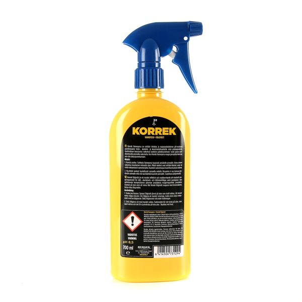 Korrek Vannepesu on vanteiden ylläpitopesuun tarkoitettu vannepesuaine. Geelimäinen koostumus vaikuttaa tuotteen puhdistustehoon: tuote pysyy puhdistettavilla pinnoilla valumatta. Kun Korrek Vannepesu reagoi jarrupölyn kanssa, sen väri alkaa punertumaan.